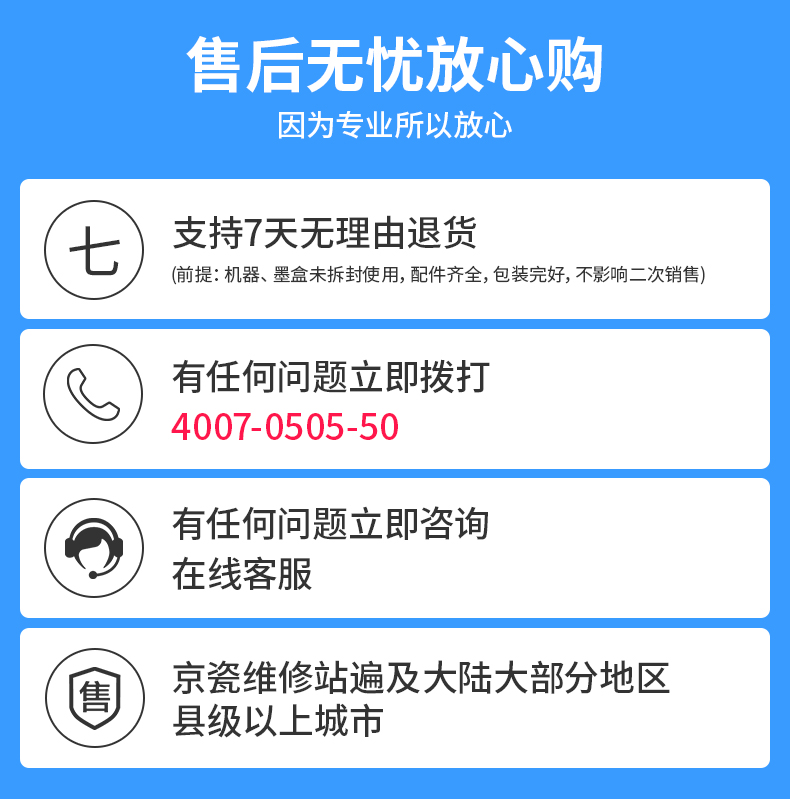 本产品全国联保,享受三包服务,质保期为:一年质保 如因质量问题或故障,凭厂商维修中心或特约维修点的质量检测证明,享受7天内退货,15日内换货,15日以上在质保期内享受免费保修等三包服务!