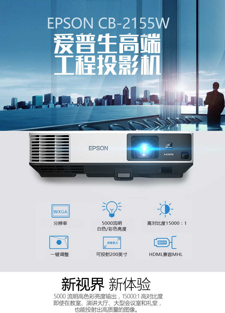 WXGA(1,280 x 800)宽屏分辨率 15000:1高对比度 全新10000小时长寿命灯泡(ECO模式) 手势演示功能 |