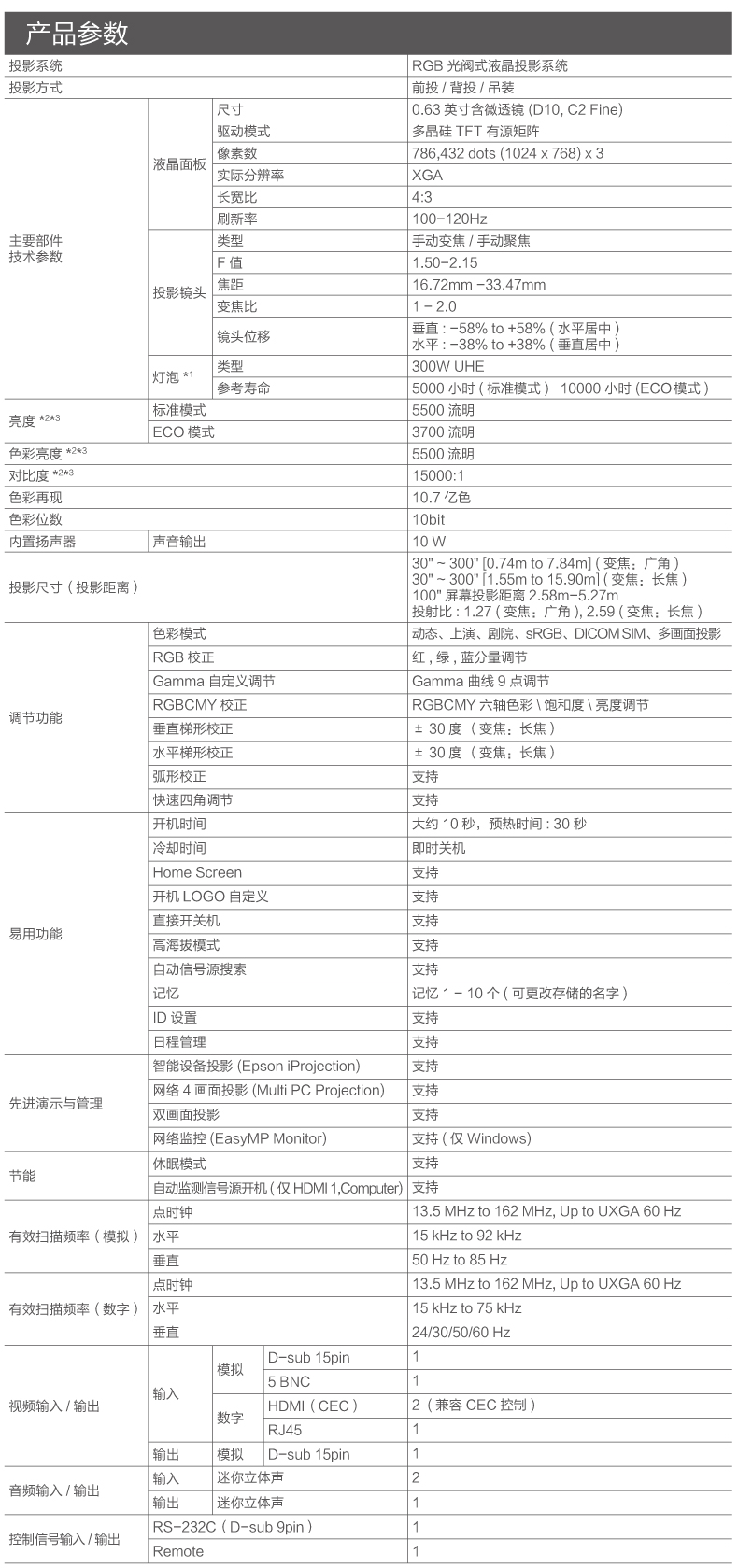 爱普生(EPSON)CB-5510 投影仪 投影机 商用 办公 会议 (5500流明 四画面投影 镜头位移)