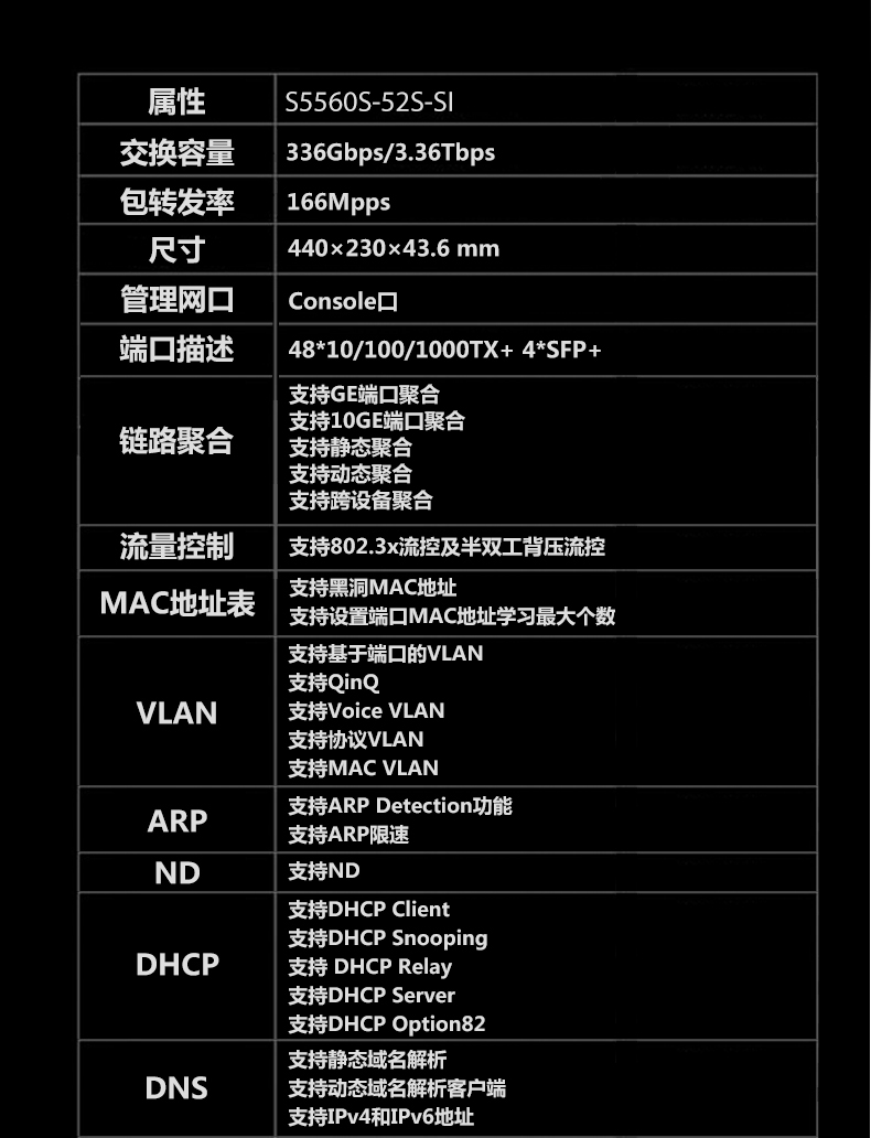 华三(H3C) LS-5560S-52S-SI 48口千兆企业级三层核心管理交换机