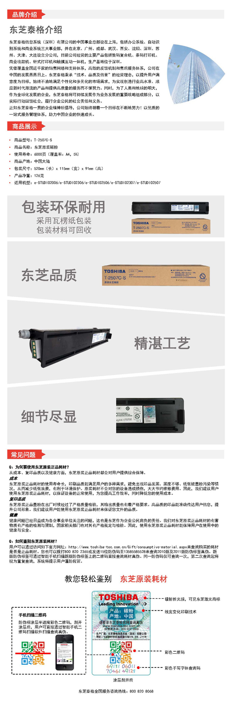 东芝T-2507C-S原装碳粉(小容量墨粉)
