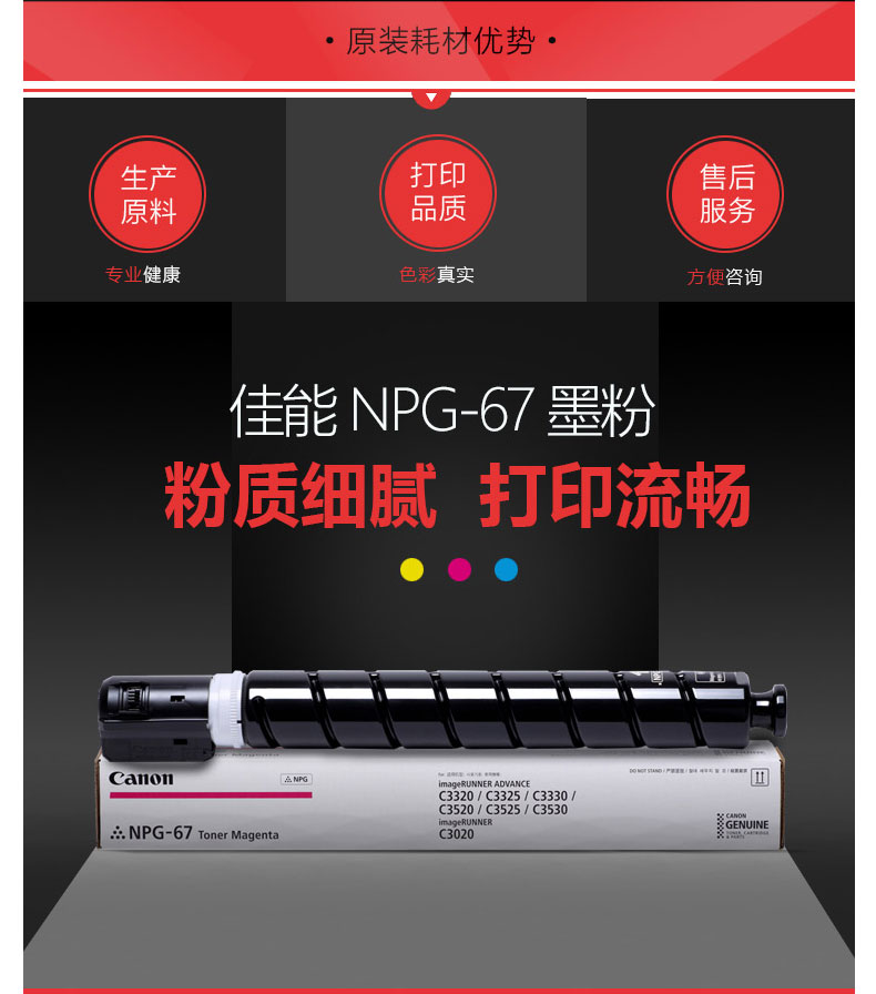 佳能NPG-67墨粉盒(适用3020/3525/3520/3325/3530)彩色碳粉 NPG-67M红色碳粉(标准装19000页)