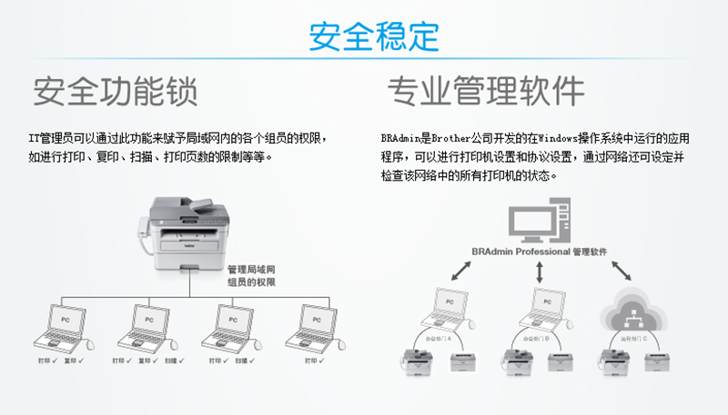 双面打印 + 有线/无线网络连接 + 打印复印扫描三合一 |